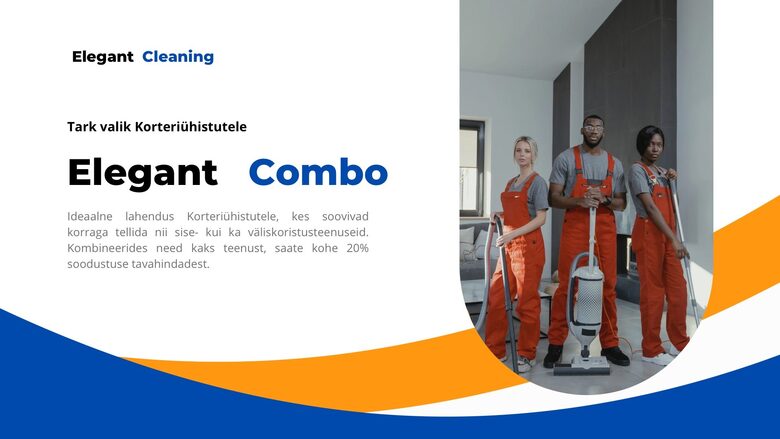 Elegant Cleaning OÜ on usaldusväärne puhastuspartner korteriühistutele ja ettevõtetele. Pakume kvaliteetseid sise- ja välikoristuse teenuseid ning eripuhastusi üle Harjumaa. Meie töö on täpne, läbimõeldud ja alati kliendi vajadustele kohandatud.